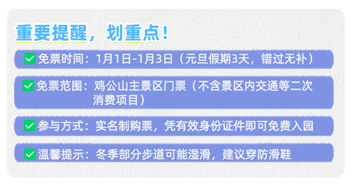 无需纠结预算,不用规划开销这个元旦,带上家人朋友赴鸡公山的冬日之约,在山林间呼吸清新空气,在古迹中触摸历史温度,让新年的第一缕阳光照亮旅途的每一段精彩~