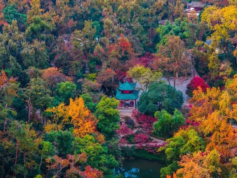 岳麓山位于湖南省长沙市岳麓区,面积35.20平方公里,海拔300.8米,是全国重点风景名胜区、国家5A旅游景区,因南北朝刘宋时《南岳记》“南岳周围八百里,回雁为首,岳麓为足”而得名。冬季可乘索道上山,俯瞰层林尽染的山景,若遇下雪,山间白雪皑皑,宛如仙境。
