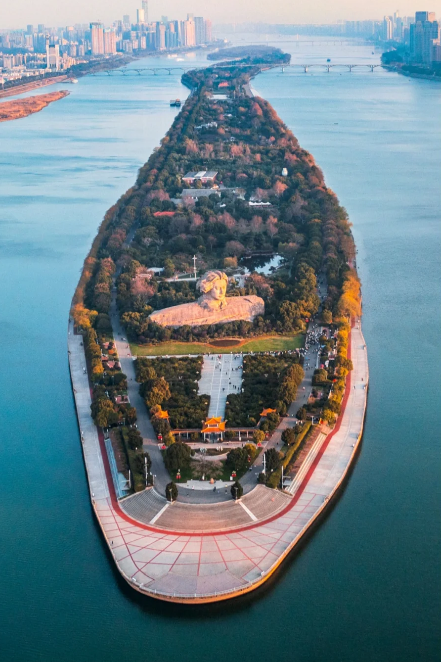 橘子洲是湘江名洲,位于湖南省长沙市岳麓区的湘江中心,是湘江下游众多冲积沙洲中面积最大的沙洲,由南至北,横贯江心,西望岳麓山,东临长沙城,四面环水,绵延十多里,狭处横约40米,宽处横约140米,形状是一个长岛。橘子洲介名山城市间,凌袅袅碧波上,被誉为“中国第一洲”。