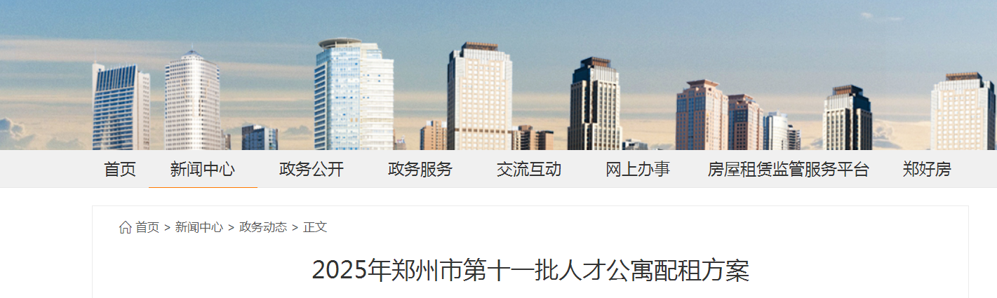 12月2日,郑州市住房保障和房地产管理局发布2025年郑州市第十一批人才公寓配租事项公告,具体信息如下: