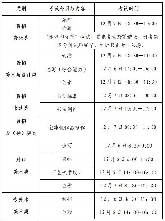 1.开考前40分钟(首场考试开考前50分钟)考生开始入场。考生入场后不得离开考场,直至本场考试结束。开考15分钟后,迟到考生不得进入考点。音乐类考生尤其要注意:音乐笔试7:40开始入场;8:15后,迟到考生不得进入考场。
