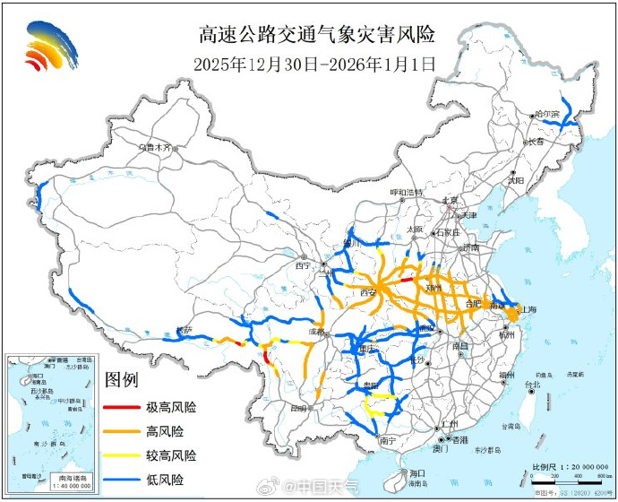 记者注意到,相比于还在讨论“雪究竟能积多厚”,一个更紧迫的信息值得所有计划假期出行的朋友关注:河南大部分高速路段已被列为交通气象灾害风险高风险、甚至极高风险地区。在中央气象台发布的预警图中,河南西部、中南部大片区域被橙色和红色覆盖。这意味着从明天(31日)到1月1日,道路湿滑、结冰将是大概率事件,通行条件将受到明显影响,这比单纯的气温数字更值得警惕。