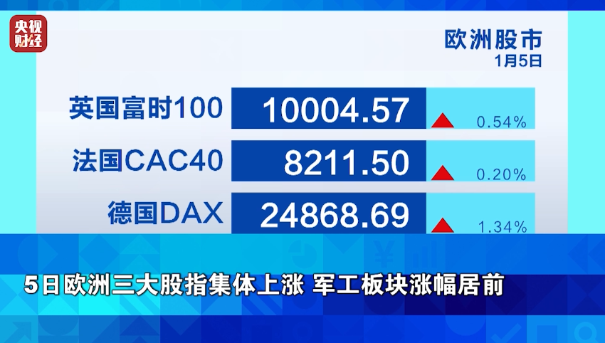 5日欧洲三大股指集体上涨 军工板块涨幅居前