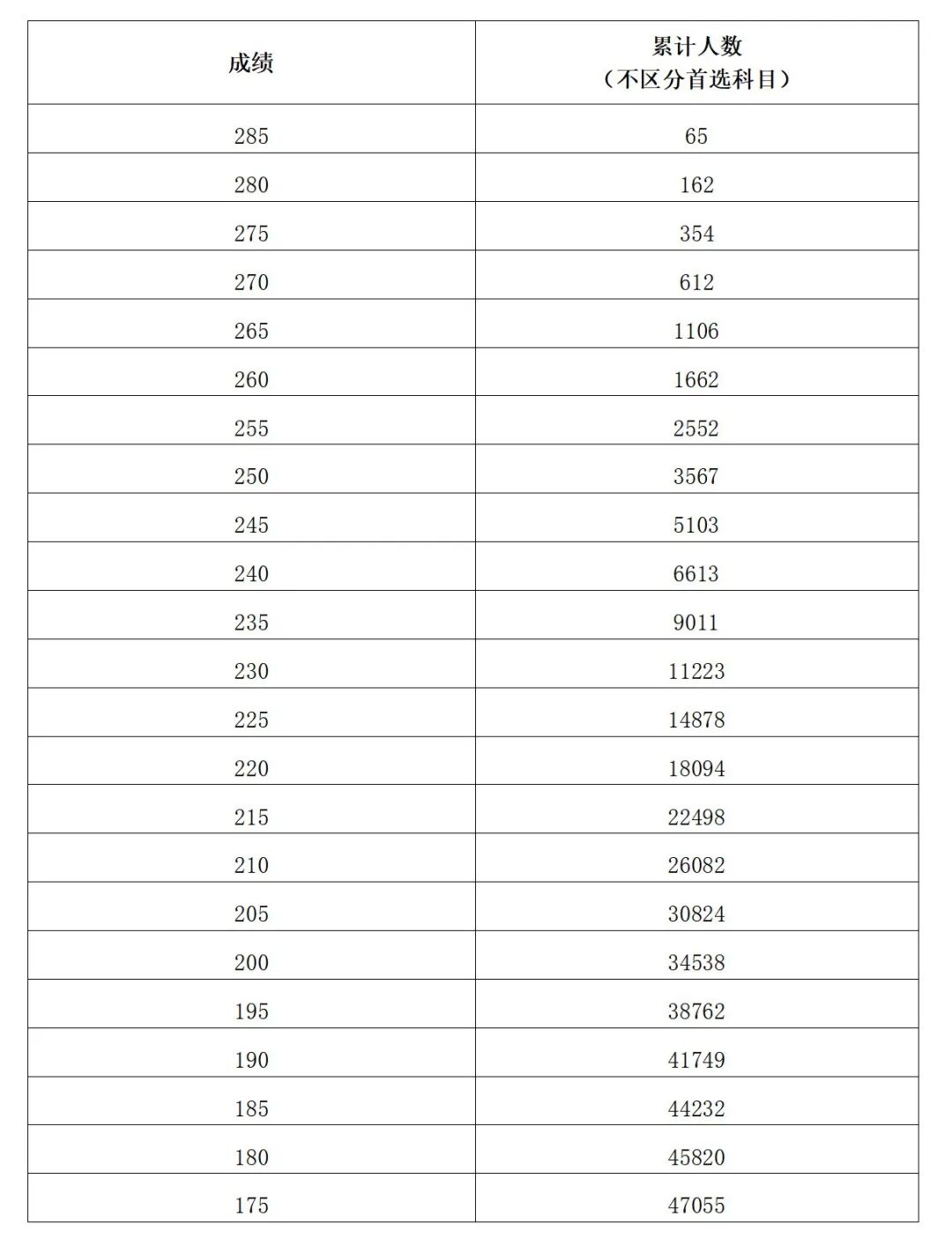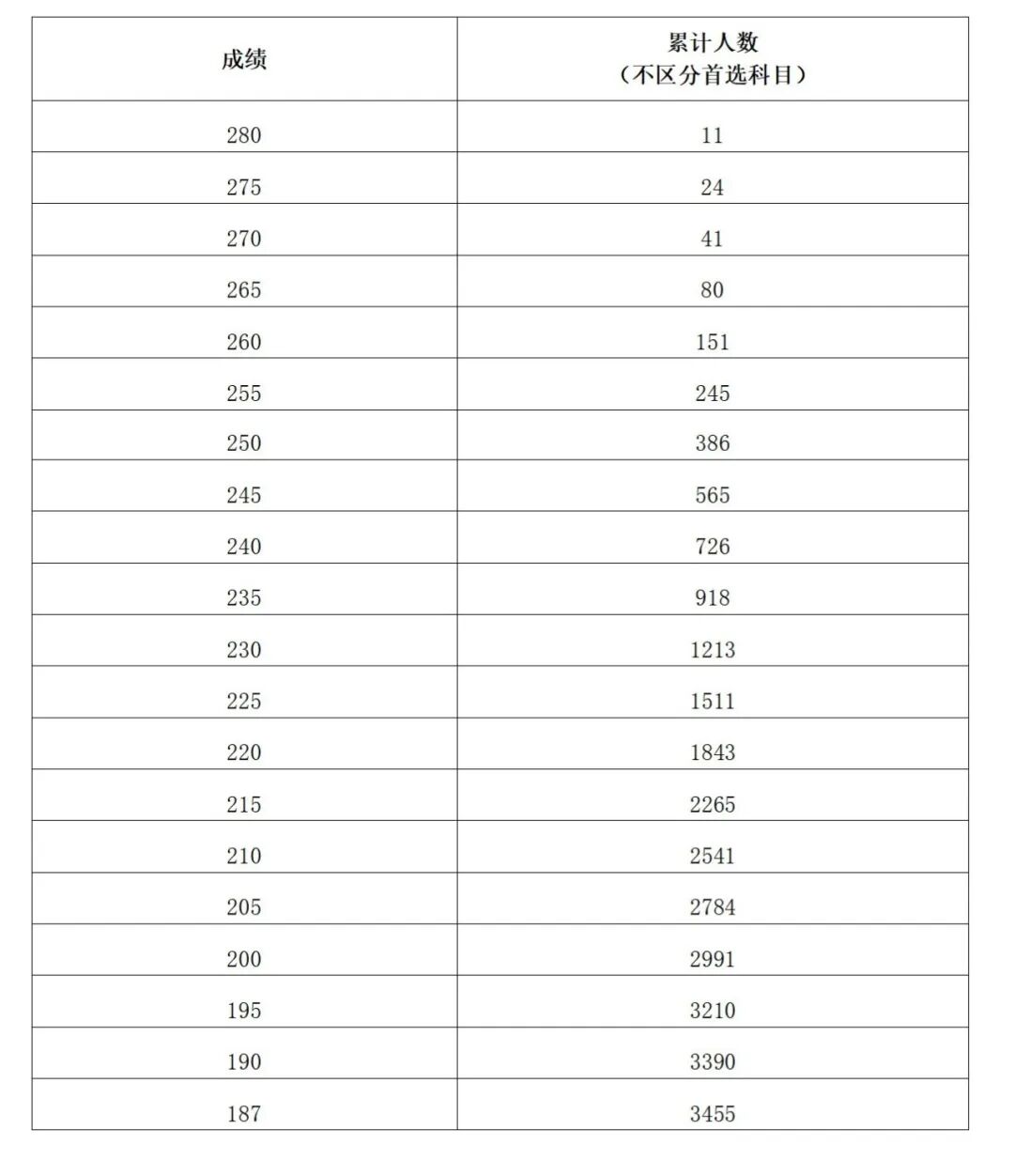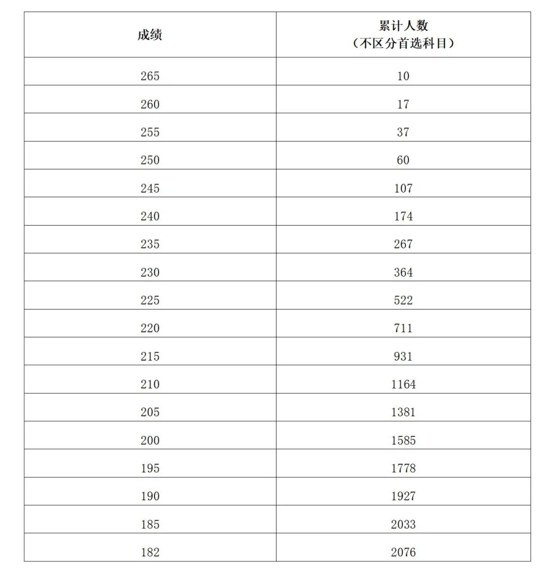 注:累计人数指该对应分数及以上考生累计人数