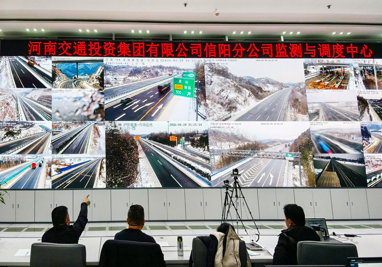 为确保巡查无死角、监测全覆盖,河南交投信阳分公司创新启用“视频轮巡+人车错巡”“无人机巡航+地面勘察”相结合的立体巡查模式,对省界路段、主线桥隧、易堵点位实行高频次、高密度监控,及时掌握道路积雪结冰情况,科学指导融雪剂撒布和机械作业时机,使除雪保通更精准、更高效。