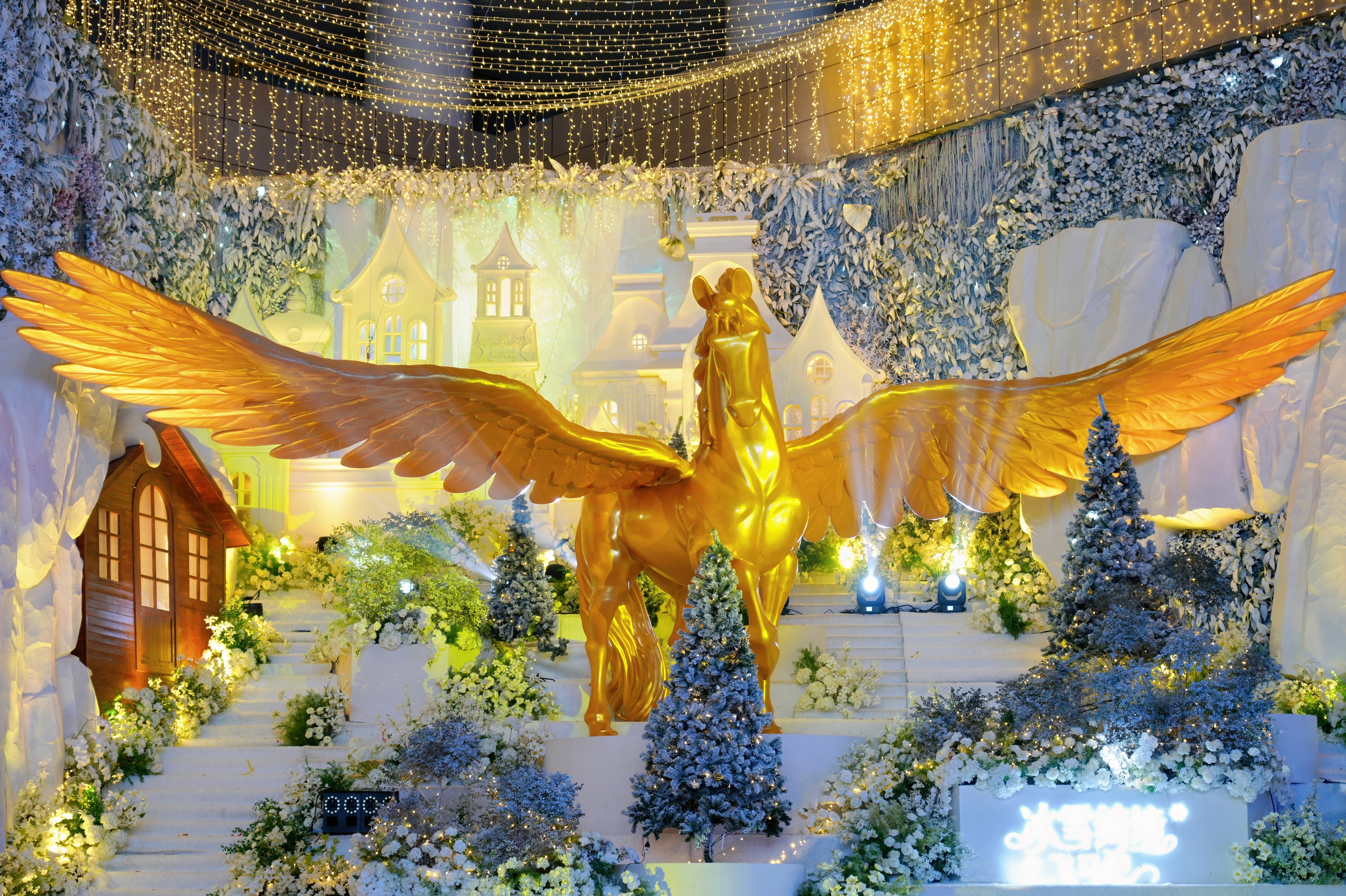以“新年开门红”为核心,中牟新区重磅推出融合明星互动、主题场景与品牌活动的多维盛宴,让欢乐氛围渗透每一处角落。区内各大商场匠心营造沉浸式场景,“冰雪绮境·飞马纪”将冬日浪漫与马年祥瑞交织,晶莹冰雪中跃动的飞马雕塑宛如从童话中走来;“森林梦幻化妆间”则藏着自然与奇幻的碰撞,藤蔓缠绕的空间里,光影流转间皆是打卡惊喜。这些将冰雪元素与梦幻森林巧妙融合的艺术装置,既满足了家庭客群的亲子互动需求,也戳中了年轻消费者的潮流审美,成为新年里最出片的打卡胜地。