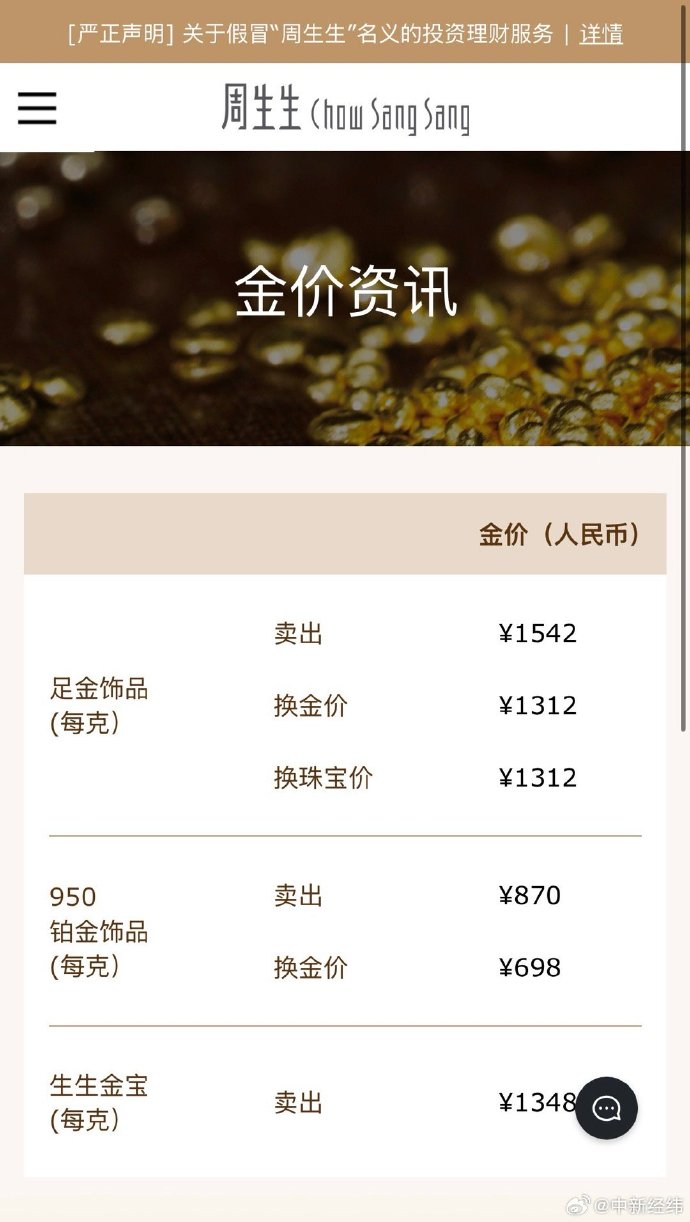 2月3日,现货黄金站上4800美元/盎司。@中新经纬查询发现,周生生足金饰品报1542元/克,较前一日1484元/克涨58元。