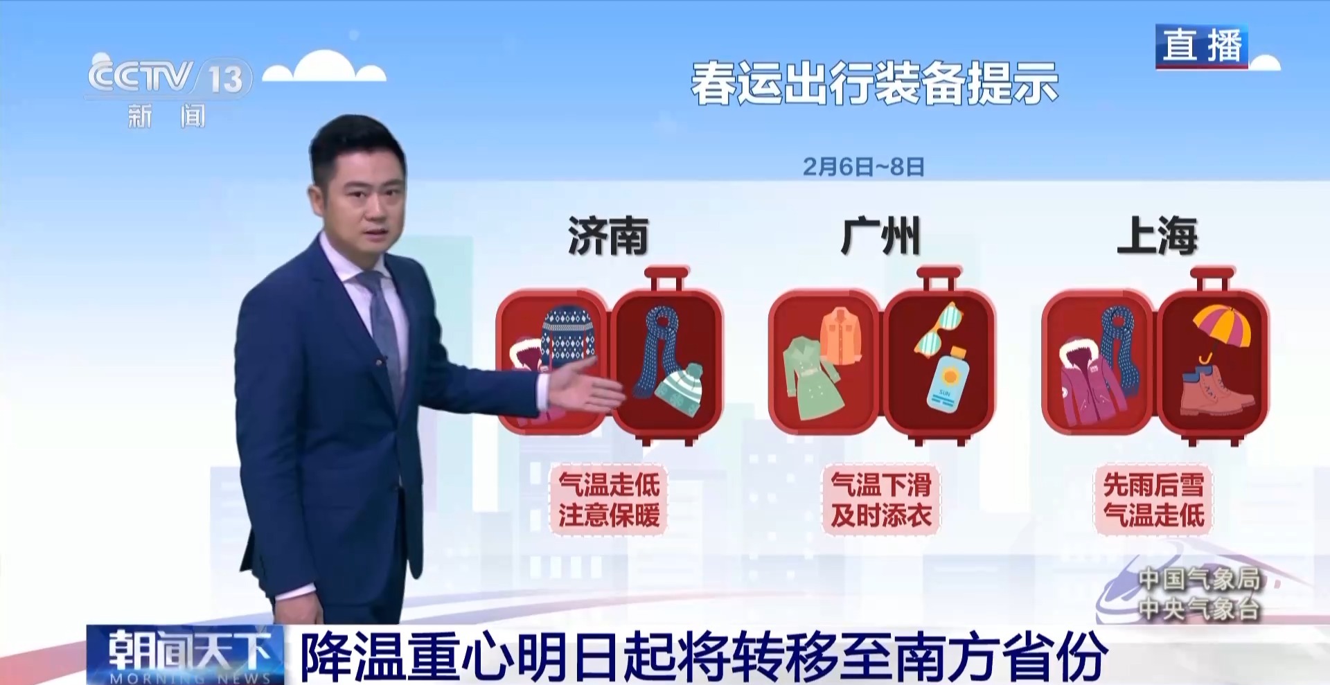 城市当中,济南、上海和广州都会出现不同程度的降温,提醒旅客朋友们注意关注目的地天气预报,备好相应的衣物。