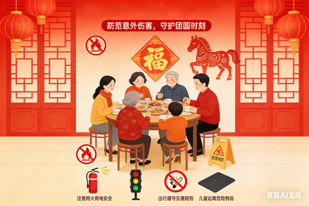 新春佳节来临,人员流动频繁、聚集增多,各类伤害风险上升。为守护群众节日安全,筑牢伤害预防防线,广大居民要提高防范意识,平安过节。