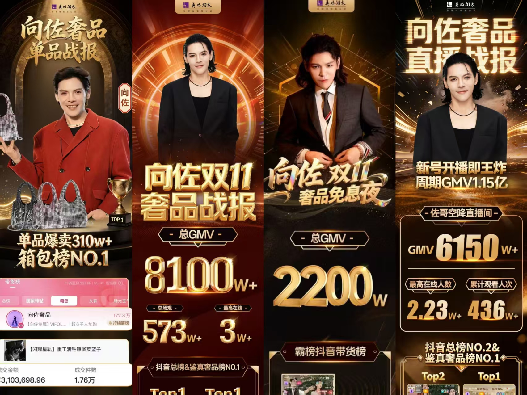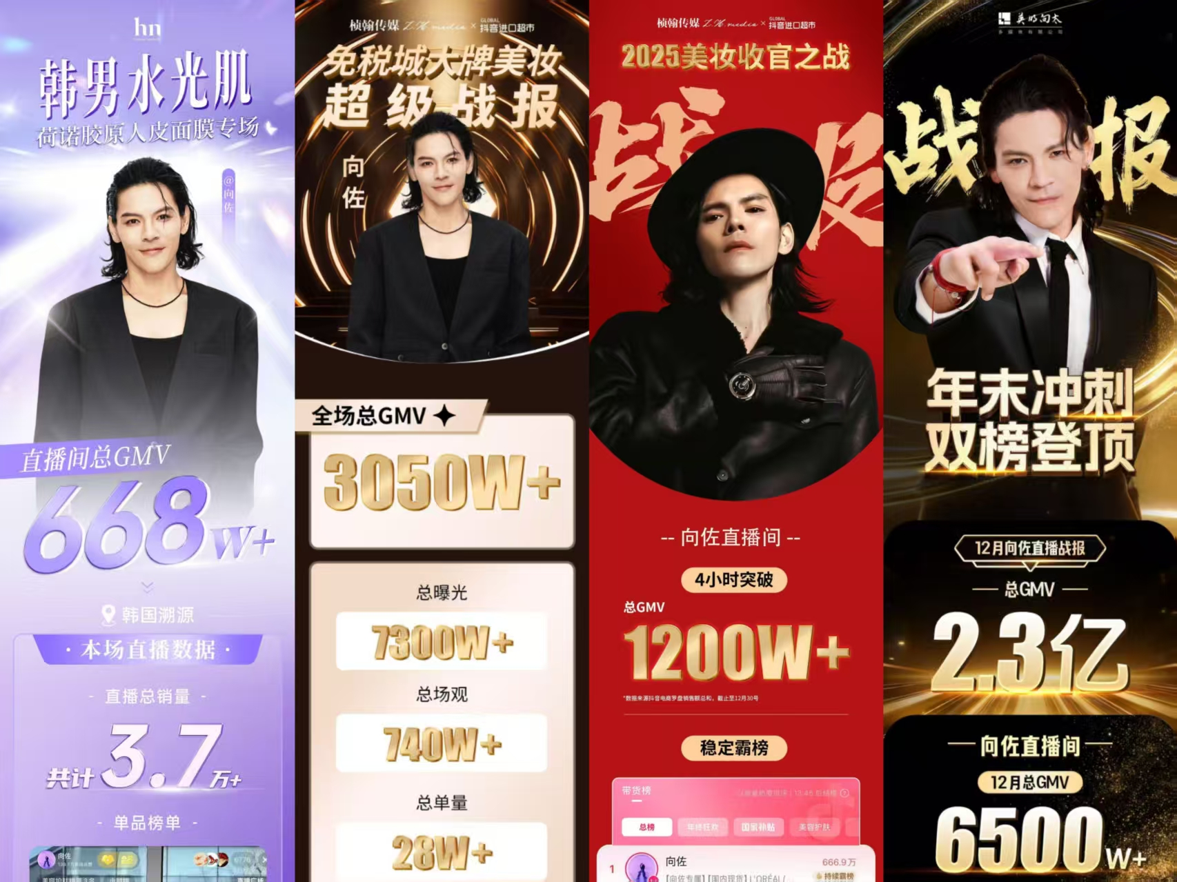 再说回他的老本行——直播。向佐做直播,不是那种站台露个脸就完事儿的路数。他扎进奢品和高端日化赛道,单场破3000万是家常便饭,3个月累计GMV5个亿。现在已经是全国头部达人那一拨了。