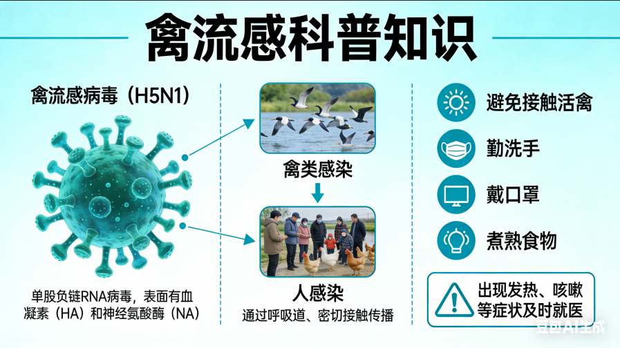 冬春季是禽流感高发季节,候鸟迁徙频繁,病毒更容易传播。下面这篇科普,帮你快速了解禽流感是什么、会不会传人,以及普通人应该如何做好防护。