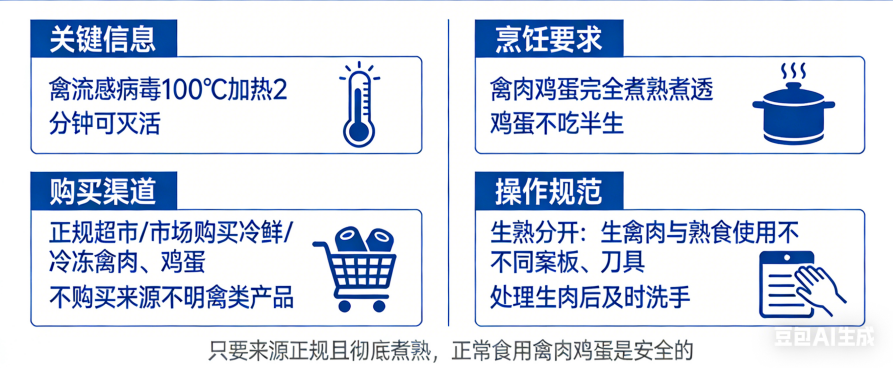 只要做好这些基本的食品安全措施,正常食用禽肉和鸡蛋是安全的。